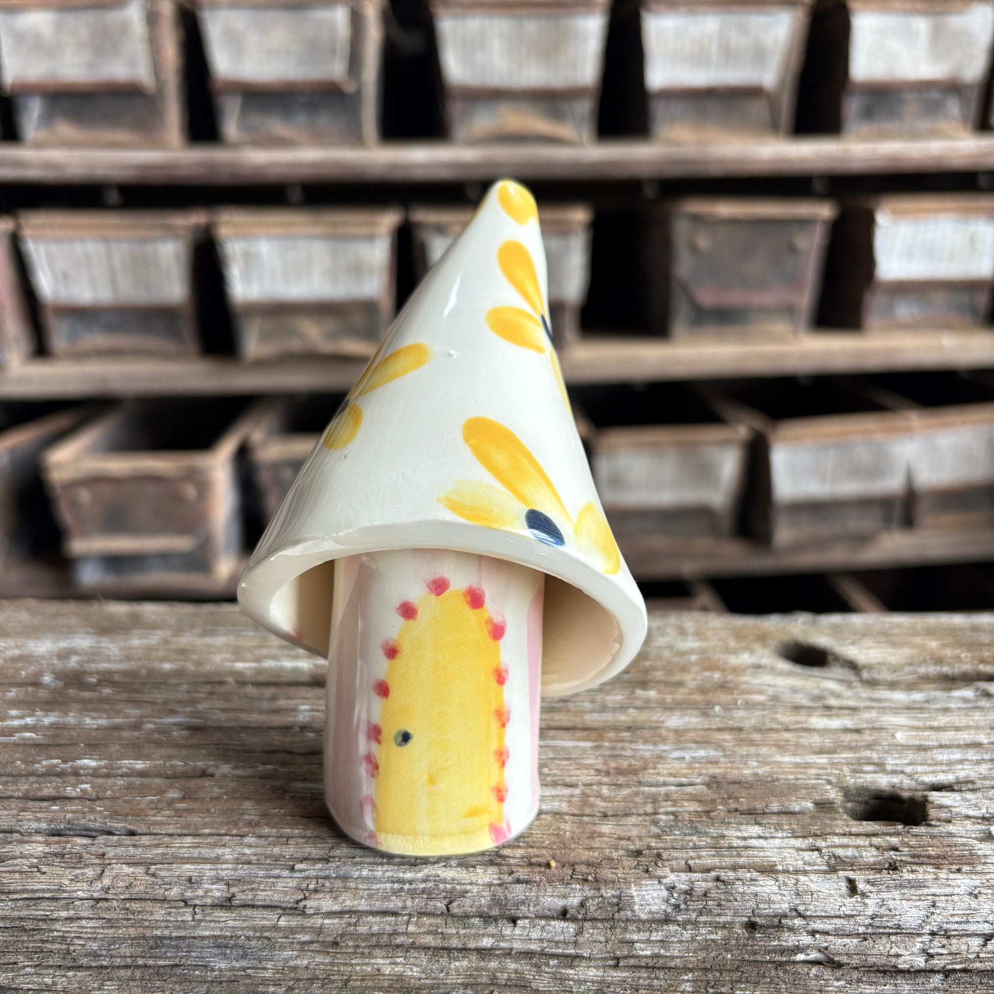 Set includes 1 fairy house and 4 toadstools - each hand painted in a variety of colours and patterns. You choose the fairy house and we will mix match the 4 toadstools.