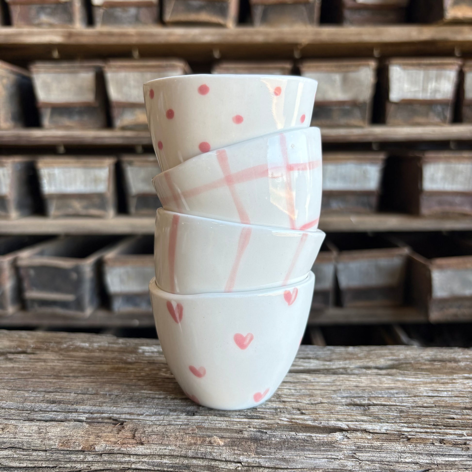 A beautiful set of four porcelain cups. Simple, elegant, and perfect for everyday use or gifting.